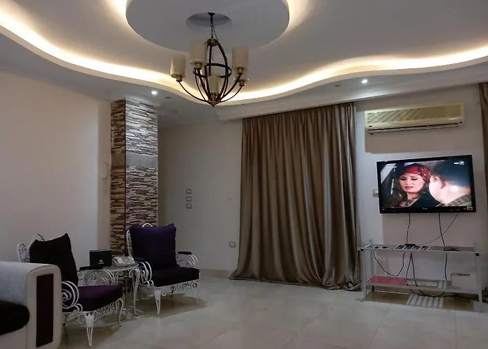 Overlooking the garden, the 2-room Apartment In New Cairo is a 10-minute drive from Masjid Fatma Al Sharbatly. This spacious apartment offers modern facilities, such as Wi-Fi and essentials like a car park for car travellers.